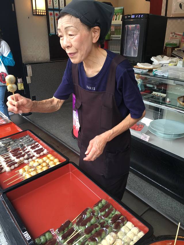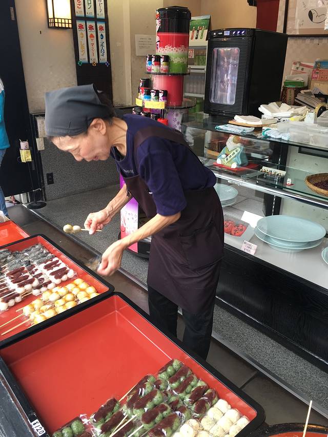 买了两串团子吃吃,觉得味道很一般。。。不能边走边吃,要吃完再走哦~不然粉都撒一地
