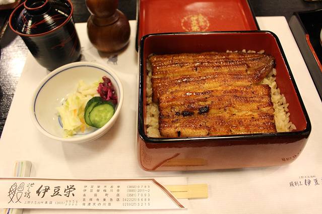 离开上野公园以前,想起来上野有一家很好吃的很有名的鳗鱼饭本店,于是就摸了过去~~~伊豆荣,当当当~~~