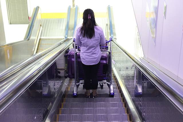 我和妈妈看到要坐电梯下去,就把行李车给甩了,后来才发现,原来人家的行李车是可以搭乘自动扶梯的,实在是太先进并且开了眼界了好吗!