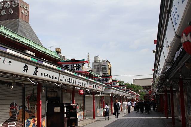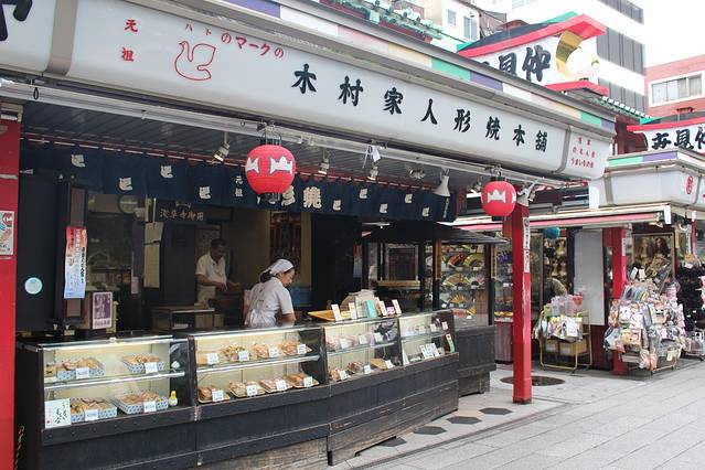 离开浅草寺的时候,商户都已经开门做生意了,这边的特产是人形烧