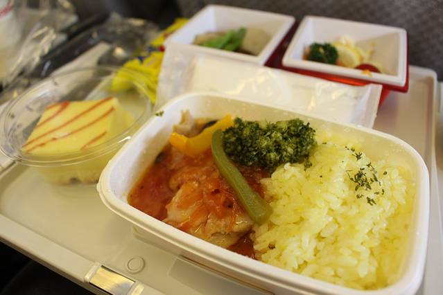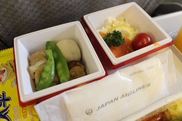 日航的飞机餐没有全日空好吃,不过也还行了吧!对于一大早起床没吃什么的人来说也算是一种安慰了,我觉得色拉和前菜味道更好一点。