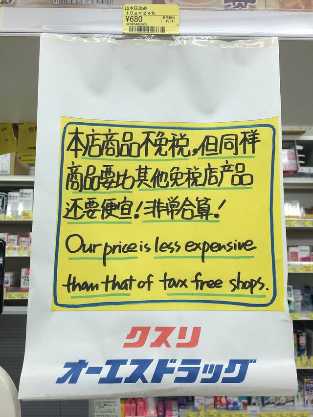 8,老生常谈大概说一下退税的问题,百货公司都是要到指定的退税柜台退税的,且收取1.1%的手续费,不过一般都有给外国人的95折优惠券哦~药妆店一般你买满5001日币,有的是5401日币,就能够直接给你结算免税的价格啦~