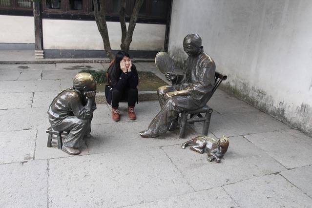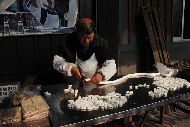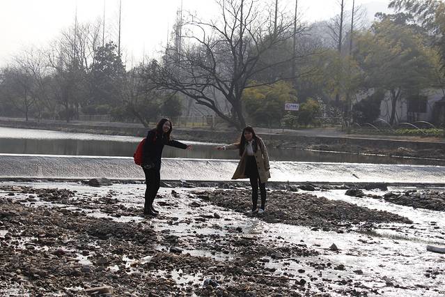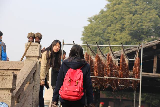 冬天的浙江还是好冷了,第一次去还是不习惯,感觉好像没有在一个3,4度的地方呆过那么长时间,一早在酒店吃过早饭后,章豆豆带我们去了安昌古镇,我对他的唯一认识就是腊肠!因为我觉得他真的好像狗屎!!哈哈哈,门票是免费的,当天,天气除了有点冷以为一切都挺好的,古城还是很多人在转转,还看了好多店面在拉糖,感觉还可以挺特别的。
