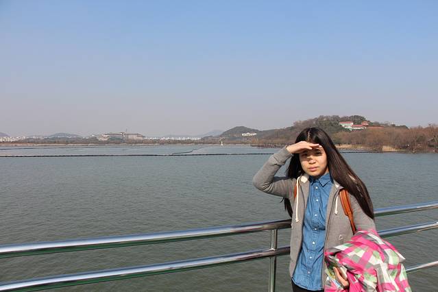 收拾片刻,我们边出发去火车站坐公车去鼋头渚太湖风景区,但是要坐太久的车了,于是我们跟其他人一起拼车去了,1人就10块钱,票依旧是学生票,不一会工夫就到了。我们买的是半票,包含了船票、电瓶车和太湖仙岛的门票了。