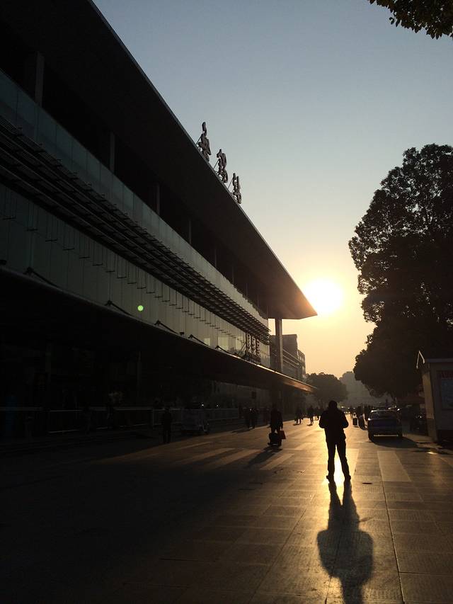 吃完我们就回酒店拿东西了,到分别的时候还真的是很不舍得,毕竟我们在一起相依为命15天了,慢慢都是回忆和感动,我们在地铁站分离,他坐地铁去武昌站,我要坐公车去火车站坐机场大巴。当时正是落日十分,一个不对焦的落日意味着这一段旅程的结束。