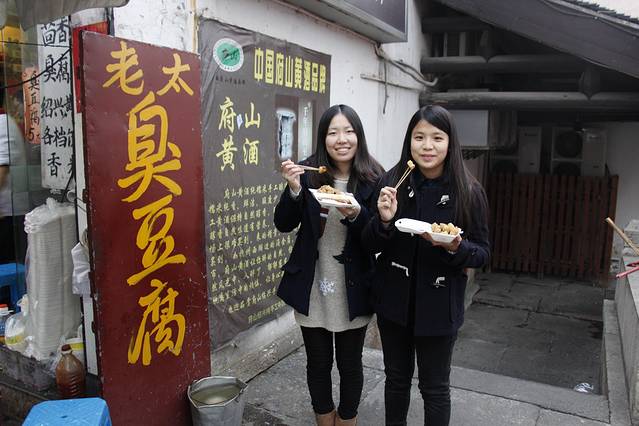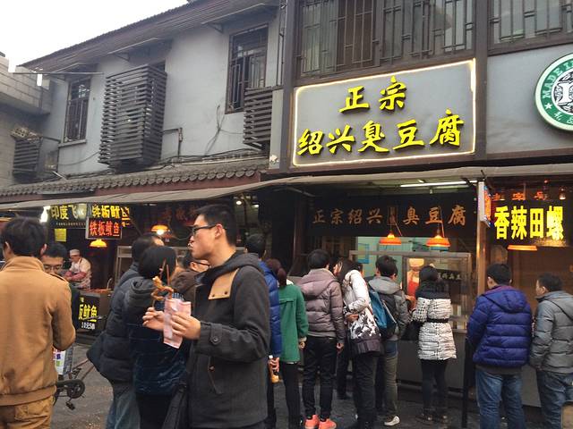 感觉这家好多人吃,很多人排队啊,有上过cctv的臭豆腐,都是这样打广告吸引众游客去排队,反正我们在绍兴吃过了就没有再在这里尝了,小吃美味太多了。