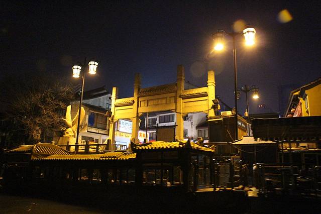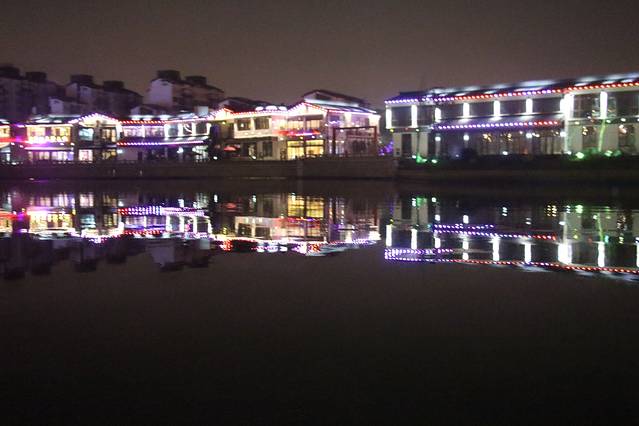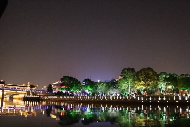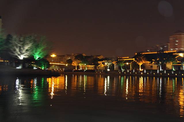 从狮子林出来已经是5点多了,我们沿着小路回到酒店,途中经过便利店买了点东西喝,整理下衣物就出发去夜游护城河了。其实今天一路上很多人问我们要不要去游览护城河,晚上可以带我们去,价格可以便宜点,一路上真的很多很多,会比较烦人。我们也没有搭理,因为早已在淘宝订了票了。价格还是便宜一点的。我们只需当天凭短信或者是预定的取票人姓名、手机号码去码头窗口换票即可,一切都很方便的。