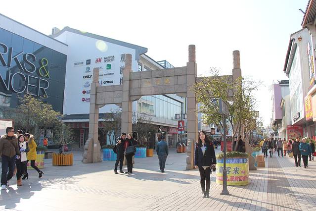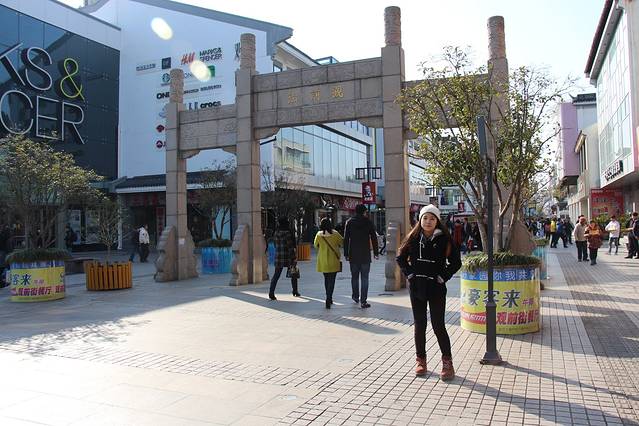 由于昨天那个店员没有帮我把磁扣打开,弄得我每次进出一个店都滴滴滴响声,因此我要回去湖滨路把昨天在hm买的帽子的磁扣打开,于是我们又回去了湖滨路,然后转战河坊老街和南宋御街。当时天空飘着雨,挺冷的。