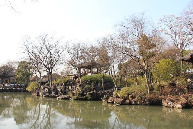 吃饱过后,我们就出发去挫政园了,一路上很多陌生人让你上他的三轮车去游玩,帮你买便宜的票,真是的不要相信,还是蛮恐怖的,我们本来坐上一个人力三轮想坐到拙政园,但是把我们拉到一个旅行社门口,幸好我们反映快就下车了,还是自己买票比较踏实,毕竟学生都是五折。而且冬天是淡季。这些信息都是在攻略书上下载的。