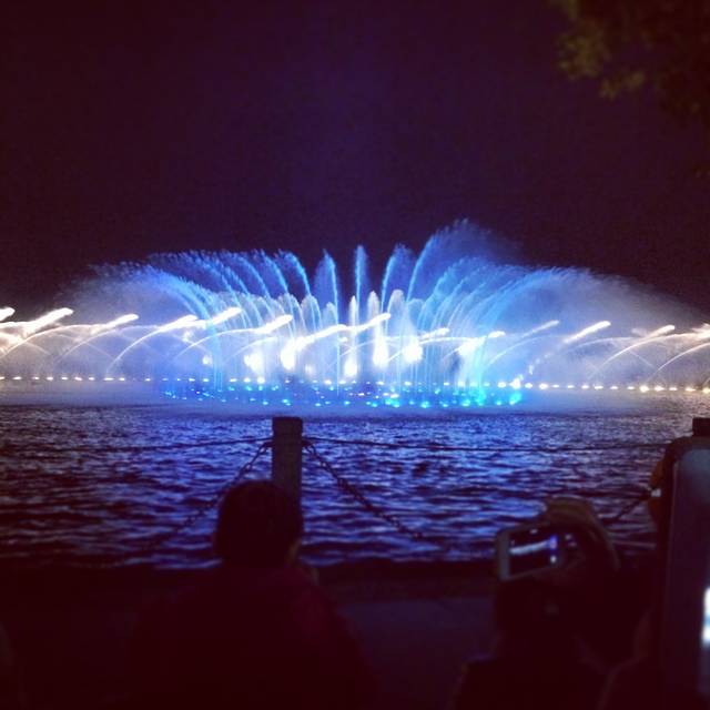 我们下岸后晃悠一下就去湖滨了,商业街很发达,我们逛了一下街,刚好踏上点看西湖音乐喷泉。一起还是很快乐的。
