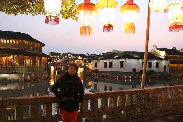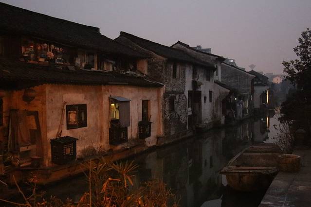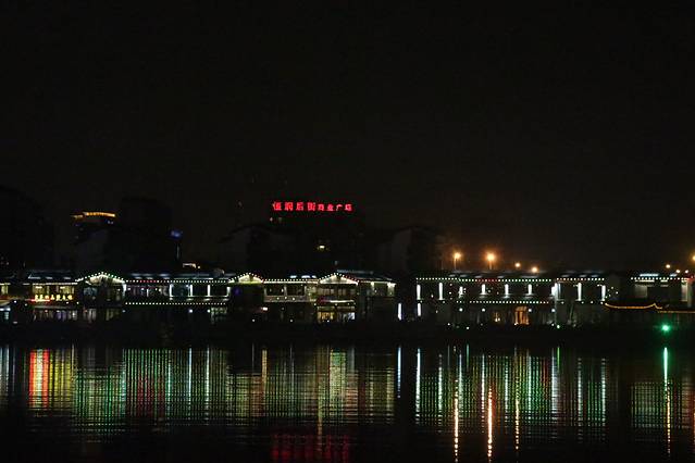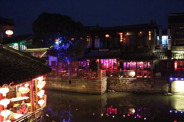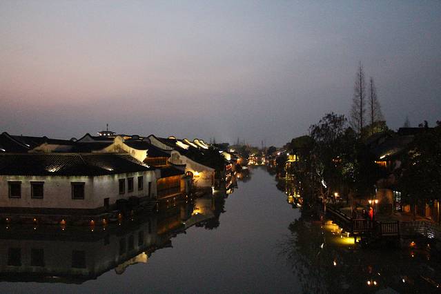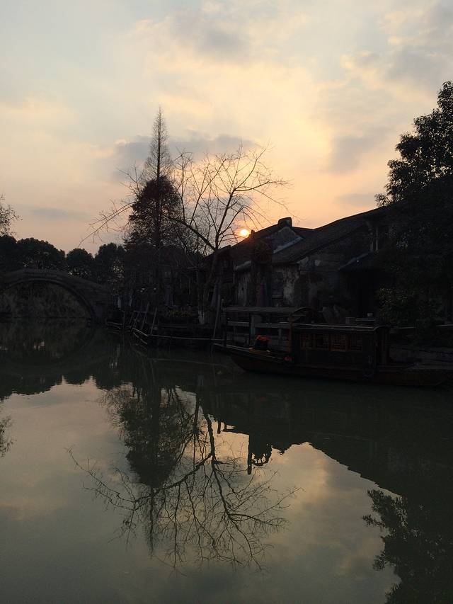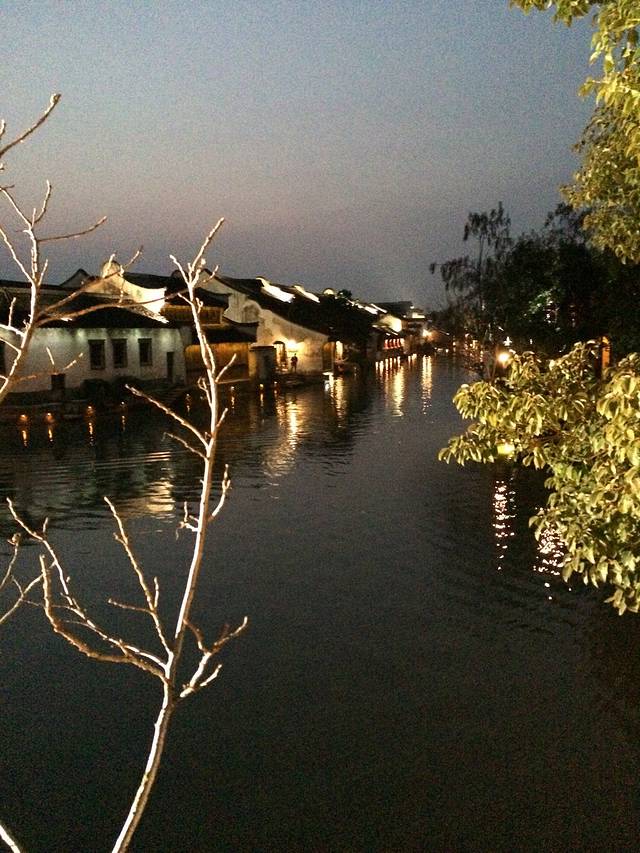虽然打大家都说西栅过于商业化,但是我觉得景区就是应该这样啊,这里的环境布局景点各方面都恰到好处,水乡真的就应该是这种感觉,其实我觉得它的美在于整体效果的和谐度。我们大概七点多八点左右开始启程回去,坐上了回去的船,当时身体已经哆嗦到不行了,真的好冷。于是又摸着路看着地图摸索到昨天吃饭的饭馆吃了一顿热菜就回客栈了,但是回客栈的路上就真的是摸黑,到处都很安静很黑暗,一辆摩托车经过就会感觉要天崩地裂,这为这个小镇增加了隐秘感和安逸感。与此同时,我们也加快了回去的步伐,因为黑暗与宁静有点令两个女生恐惧。