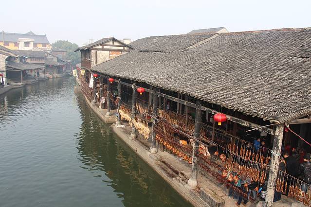 如果你在乌镇有一整天的时间,你也不想看东栅的一些展览馆(我看了,真的没意思),那你就一定在早上6:30之前进入东栅,这时的东栅保安还没有上班。保险一点吧你就6:20进去,这样你就省了100元的东栅门票。在东栅你慢慢拍照,慢慢看,旅游团队来得多的时候你还可以跟着团队进到展馆里面去看看。过了中午,你出东栅吃饭,再到南栅看看。直挨到下午5点的时候,你花80元买一张西栅的夜景票看西栅,在西栅也有那些染坊,酱园之类的展馆。