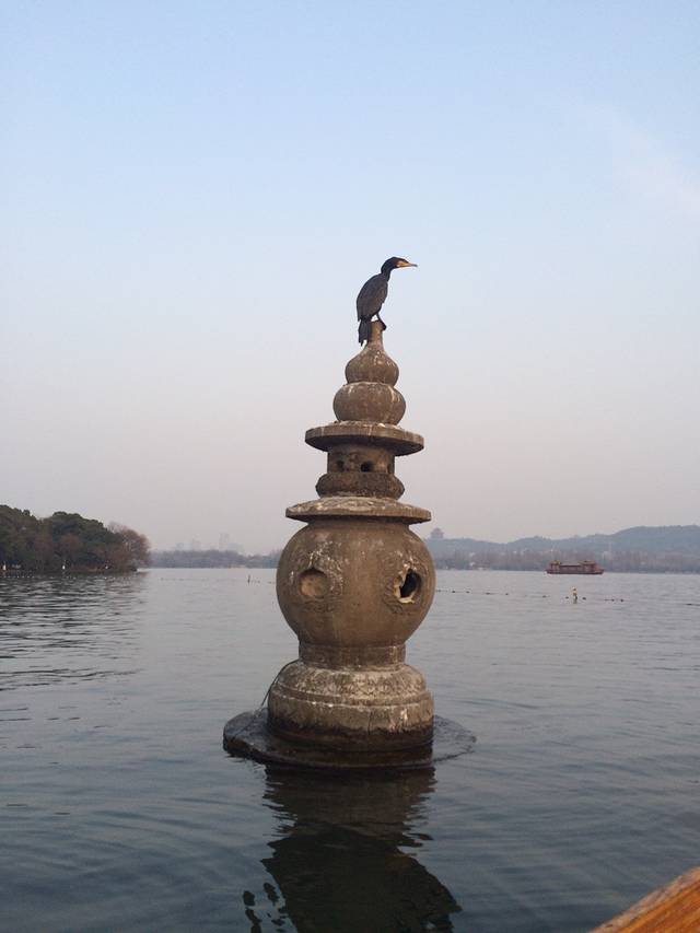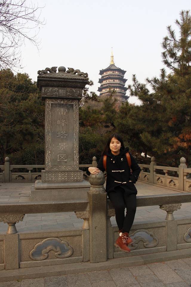 其实杭州还是好冷的,我们首先到了雷峰塔,但是我发现我打印版的攻略丢了,让我妈再发一份过来,哎。一番波折后才开始游玩,我们对塔啊、寺庙都没有兴趣就没有进去了,就在门口观望一下,就往苏堤边走了。我感觉冬天的西湖还是挺多人的,只是树叶比较少而已。