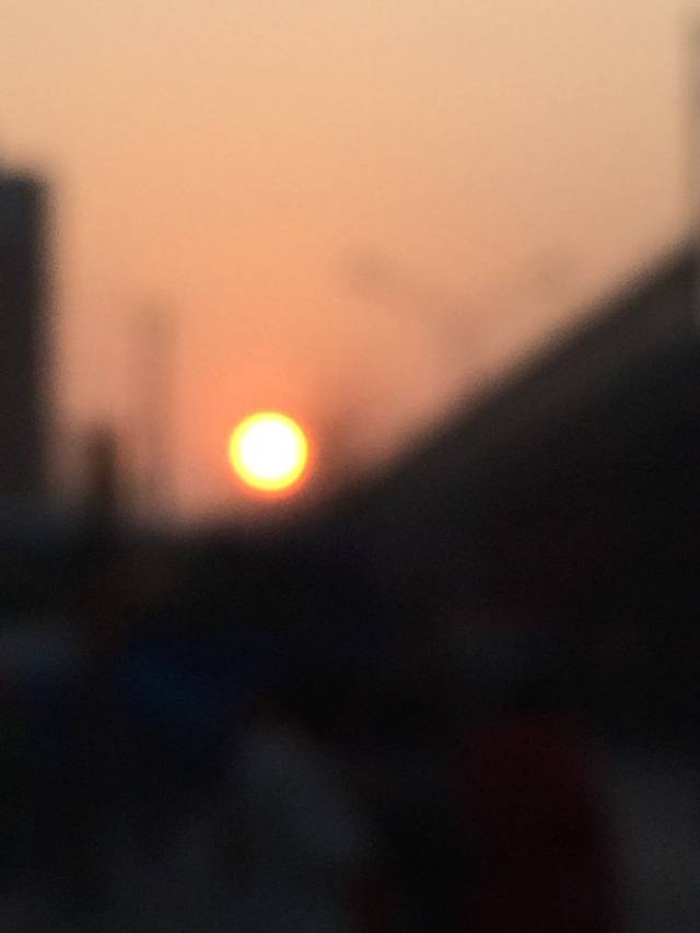 一早起来我们收拾一下,叔叔送我们去高铁站了,感谢他们这几天的照顾和接待,觉得在旅程中也很温暖。然后我们又回到了两个人的历险记。下图是早上起来的时候看到的阳光。忍不住拍下,可以看到远处浓烟滚滚。