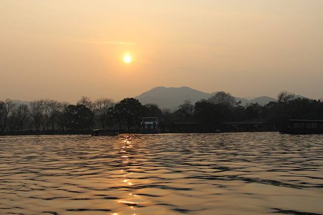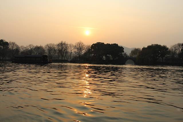 船夫还是挺好的,会唱歌,会主动跟我们聊天,给我们找好的角度拍照,带我们去三潭印月,也有问我们需不需要上小岛, 但是最后他说其实也没有什么值得上去看的,就是一个西湖中心的一个小岛而已啦。所以我们也就没有上去,因为当时已经是日落时分了,我们想游完湖随便逛逛就去湖滨路找点吃的。