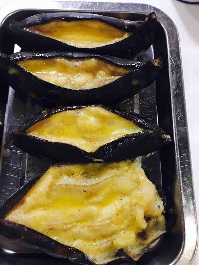 烤香蕉:看着像烤茄子,外表还挺有创意,但是味道就是普通烤香蕉,没什么特点