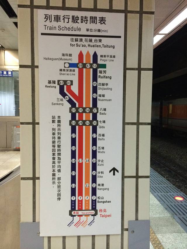 从台北出发去瑞芳,如果你要做台铁,就基本这几条线,我们选择的区间车是最慢的,站站停,不过也就比最快的慢了十几分钟而已~你也可以选择搭乘巴士前往,我另一个来看演唱会的小伙伴就是搭乘巴士去的九份,在忠孝新生站搭乘1062,时间也差不多一个多小时就能够到九份啦~
