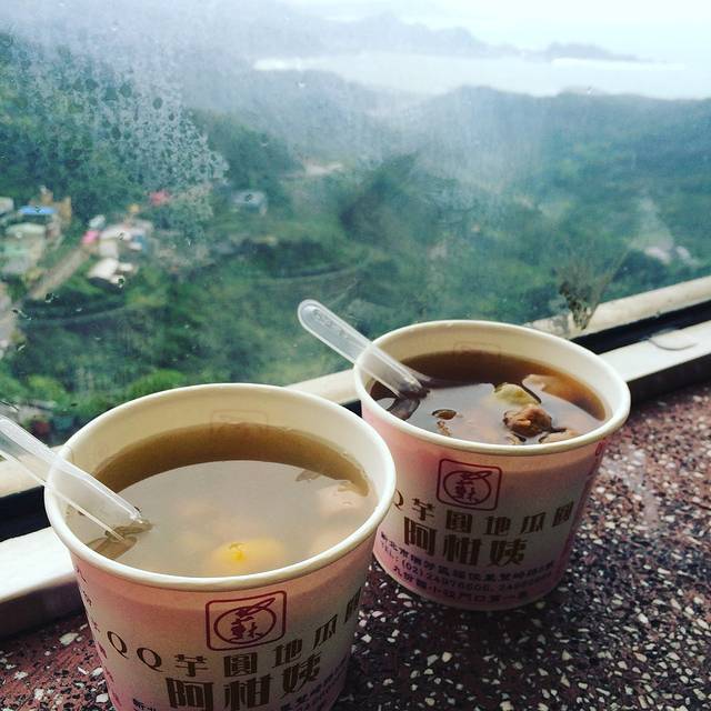 这一次终于成功吃到了阿柑姨芋圆!上一次去的时候他们家因为有白事所以暂停营业~这次也算是成功完成上次的任务~阿柑姨比较高,在半山腰上,不过他们家店铺很大哦~还有海景看哦~因为实在是太冷了,我们就没有选择冰的,只能点了热的,一碗是综合汤,一完事桂圆汤,必须补补热气,本来穿的就不多,在城市就很冷了,现在跑到九份的山上就更加的冷了。。。简直了。。。