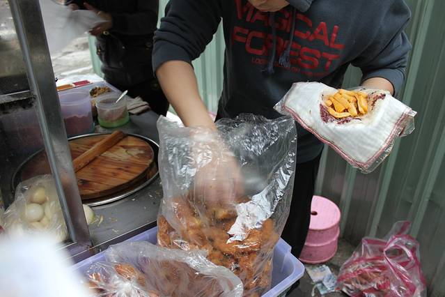 九份老街吃的第一家就是鱼丸伯仔,上一次吃了鱼丸汤和豆腐包,这一次把粉丝也给吃了,我觉得粉丝真的好好吃啊!!!怪不得人家说粉丝好吃。。。真的好吃啊。。。比鱼丸好吃呢!!!反正每一款都是30台币,套餐三个都有就是90台币,价格也还是很可爱的。