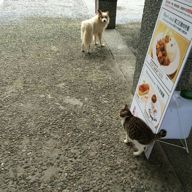 狗狗真的好欺负,猫咪一弓背,她就默默的走开了。。。作孽啊!!!