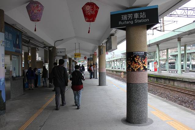 由于衣服带的太少太薄,所以每一次开车门我都冷的想要盖被子!终于到达了瑞芳站啦~好冷啊只能说~下车就发现下雨了