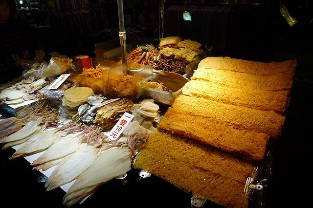 接下来就是夜市边走边拍啦~对于高雄六合夜市我的印象一直都是蛮好的,街道很宽,然后都是海鲜为主,价格也不错~