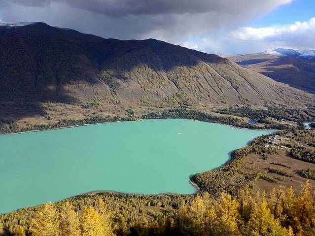 在卧龙湾坐区间车离开,从而结束我们的喀纳斯之旅。趁着天还亮抓紧赶路,因为当晚要赶回布尔津。而且前面那一段都是盘山公路,不是那么好走,所以尽量要赶在天黑前走完这段山路。幸好最后还是基本能完成任务,在进市区前还为了防止区间测速超速,特意在郊区先吃完饭再进城。由于已是国庆黄金周假期,宾馆的价格都已大幅上涨,不可能再有前几天150/标间的优惠价;普遍都要400多以上,最后找到一家280/标间的已经算不错了!