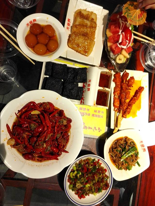 由于是8点的航班,天还没亮就要起来。幸好这边安检相对没那么严格,而且一大早的人还不多,一切顺利飞回长沙。看到还有好几个小时高铁才开,从机场坐磁悬浮列车到了高铁站后就把大件行李寄存在客服中心,三个行李箱加一大包总共收费60,不便宜啊!然后坐地铁出市区,来到享负盛名的火宫殿。果然名不虚传,非节假日依然是人头涌涌、生意兴隆。来到这里必须要吃的首选肯定是臭豆腐,近年来广东这边有不少路边小摊有卖臭豆腐,但那味道真的让人闻而却步,更不要说大胆尝试了。但这里正宗的臭豆腐首先是不怎么臭,而且颜色也不同,是黑色的;外脆内软,口感不错。另外还吃了糖油粑粑、年糕、口味小龙虾、酸豆角腊肉等等。这里经营还有一个高明之处,就是所有小吃前面都没有价格牌,让人在取食物时完全不会考虑价格的因素。当时如果有价格牌,估计就未必会要口味小龙虾了,仅仅是味道还可以,但虾的肉质真的不敢恭维,而且分量不大,居然106/份!吃海鲜还是广东会好很多!吃饭时拿出高铁票看了下,才发现之前一直以为是4点开车,原来是3点15分;幸亏发现得早,吃完饭就不再逛街了,赶紧去坐地铁。路过一家马迭尔冰棍店,原来今年刚好是这品牌创立110周年,就每人一根。我本来想试一下香草味,谁知她们要的榴莲味一拆开包装,浓郁的榴莲香味瞬间把我俘虏,我也改要了榴莲味!顺利回到高铁站、准时上车,我们这次刚好安排到所在车厢的第一排,位置比其它排要宽,行李箱放在座位的前面,但又不会顶到腿,非常不错!准点到达广州南,Wangzhiyuan已在站外等候,晚上安全把我们送回可爱的家,圆满结束这次开心快乐的新疆之旅!