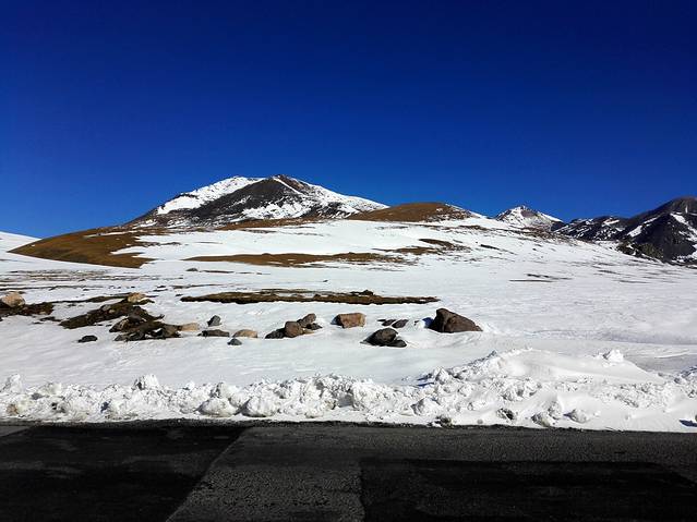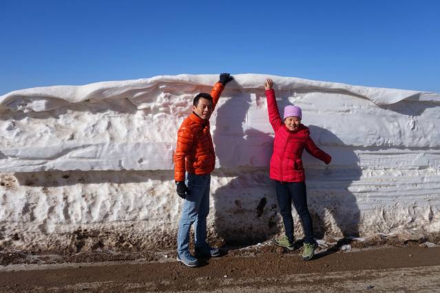 今天一早起来,因为今天的驾驶任务相当繁重;今天要走著名的独库公路。独库公路,从独山子到库车的公路。全长561公里、连接南北疆的公路,即现在国道217中的一段。她横亘崇山峻岭、穿越深山峡谷,连接了众多少数民族聚居区。它的贯通,使得南北疆路程由原来的1000多公里缩短了近一半,堪称是中国公路建设史上的一座丰碑。为了修建这条公路,数万名官兵奋战10年,其中有168名筑路官兵献出了宝贵的生命,平均每3公里多就有一名战士牺牲!其中280多公里的路段都是在海拔2000米以上,其中4座达坂(达坂:意为冰雪蔟拥的高山)海拔在3000米以上,路经5条河流,拥有世界唯一的防雪长廊,全国海拔最高的哈希勒根公路隧道(海拔3500米)。独库公路另一个重要的作用就是:成为带动新疆天山北坡自然景观旅游的黄金通道。沿途有那拉提草原、乔尔玛风景区、巴音布鲁克草原等享誉疆内外的自然风景区,还有被称为“南天池”的大小龙池也如两块晶莹剔透的翡翠,镶嵌在雪峰环绕的半山腰。另外,公路两侧还分布着红褐色的天山神秘大峡谷、克孜利亚景观、布达拉宫山地景观等独特的山地自然景观,吸引着众多海内外游客观光旅游。只有走过这条路的人才会真正明白。这不是一条平凡的路。如果从库车出发走独库公路,人们将经历一个“从火焰到海水”的心理历程。但是!但是!但是!重要的事情说三次!独库公路注定成为了我们此行的第一大遗憾!当我们来到新源县G218与独库公路(G217)的交汇处时,发现独库公路的入口被栏杆挡住,下车问工作人员,被告知独库公路已实行冬季交通管制(网上是说每年11月初到次年5月封闭,今年估计是因为前几天下了大雪所以提前了)。真是超级郁闷!旅行就是这样,总会有一些意想不到的情况出现;有时是惊喜,但有时却是遗憾;而往往就是这些遗憾反而增强了你计划下一段旅程的动力!百般无奈之下只能改道沿G218前行,稍微有点安慰的是G218有好几段都是在雪山中穿行,风景还不错,而且有些积雪还挺厚,就下车玩雪拍照,算是小小的补偿!