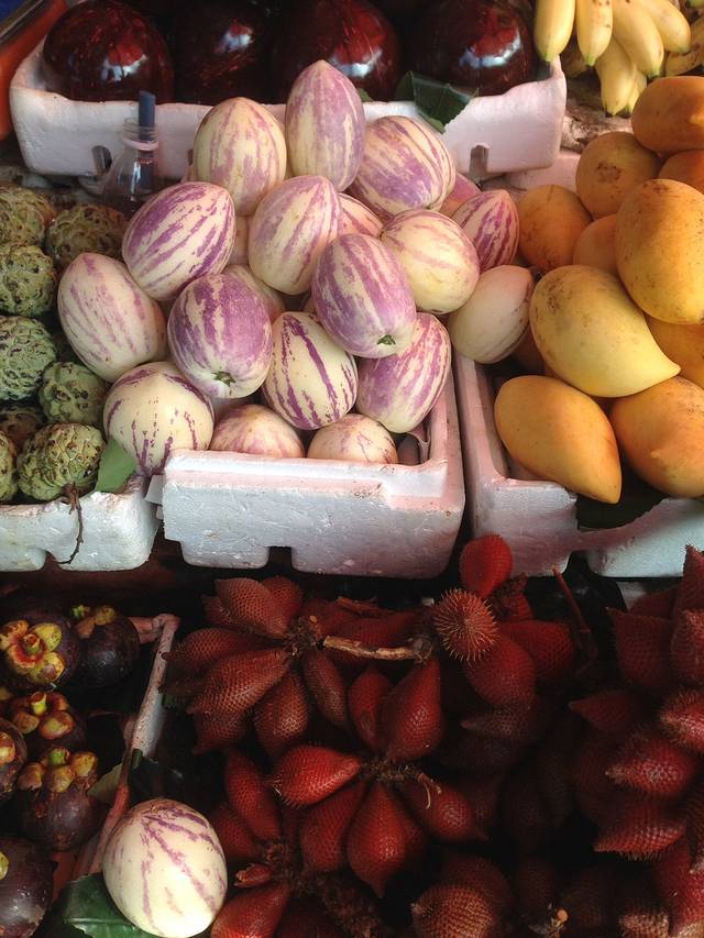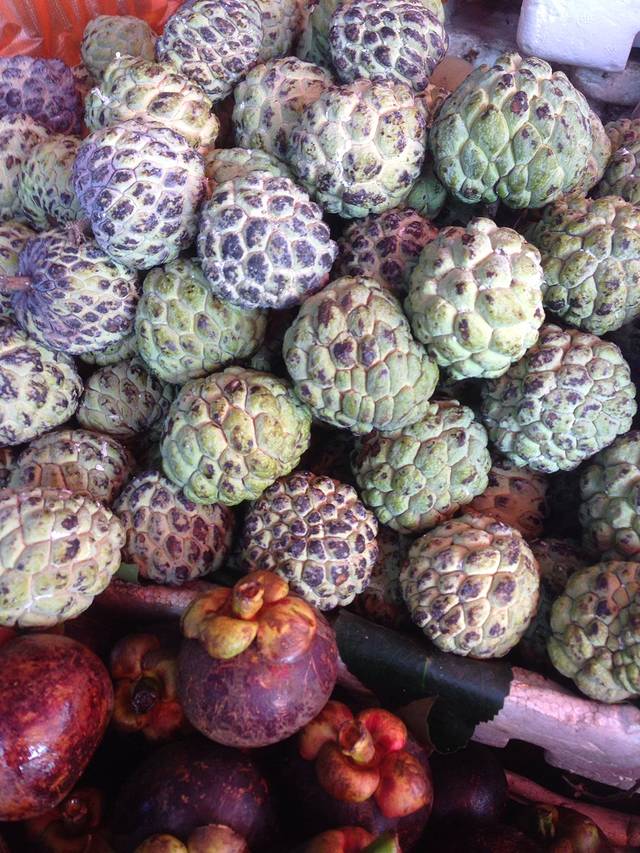 在洋人街里遇到了卖水果的阿姨,芒果、蓝莓、释迦摩尼果....