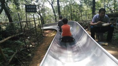 下山的时候可以不用爬,坐滑道,超级刺激。直接滑到上山的地方,35一个人,真的很有意思,超级值得一去的哟。我也真的是完全不想去爬了。