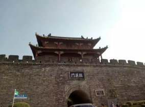 船票很便宜,2块钱一个人,河上波光粼粼,风景不解释了,只有自己去看才能看见这种风景。下了船以后,古城的大门马上就屹立在我们面前。