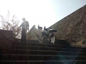 下了车以后,还需要走2公里的路才到唐城哦,也不是很远。