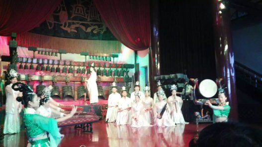 在塔的第一层,还可以观看编钟节目,一共有三个节目,为了这几个节目,别说10元,4.50元都值得,其实就是用编钟演奏了几首歌,但是真的很优美,让人很愉快。