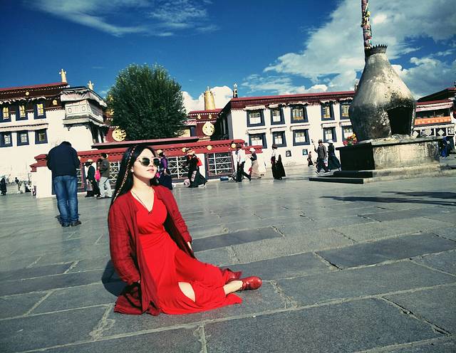 在八角街逛了一圈,蹭了店家的牦牛肉和茶以后,在大昭寺广场悠闲的晒了会太阳,天忽然下雨,于是匆匆赶回住处。
