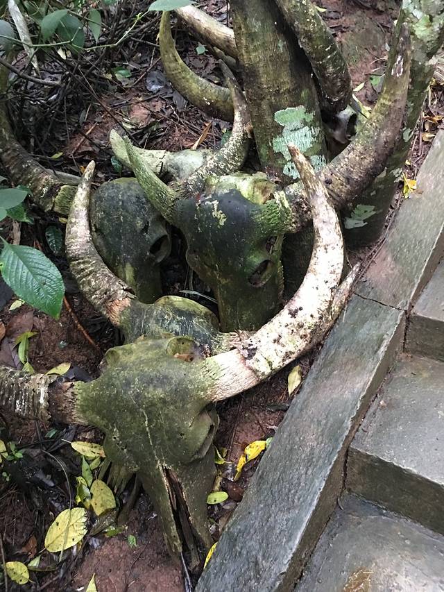 基诺山寨道路两旁的牛头,完全是真的。