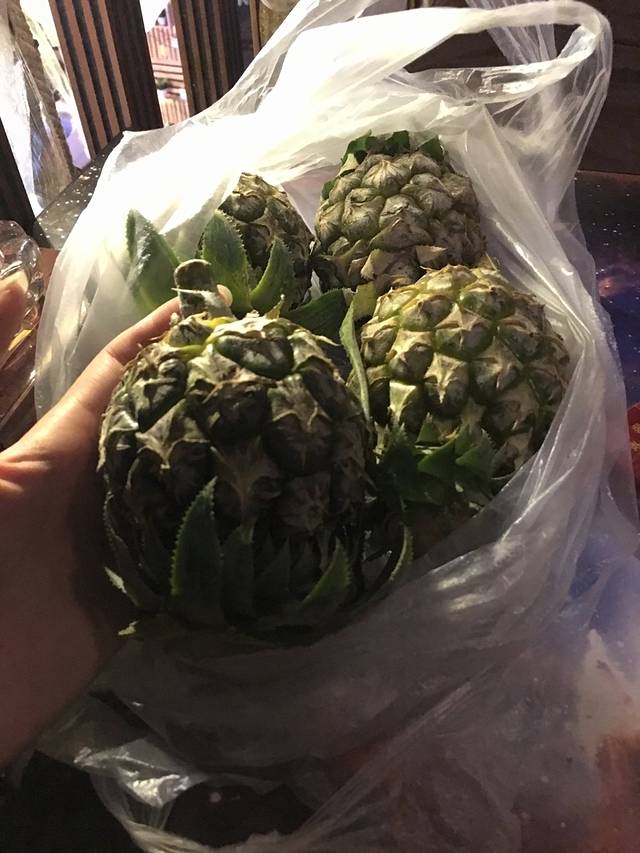 夜市的唯一收获:一只手完全能捏住的小菠萝。吃货真的是去到哪里都少不了吃啊。