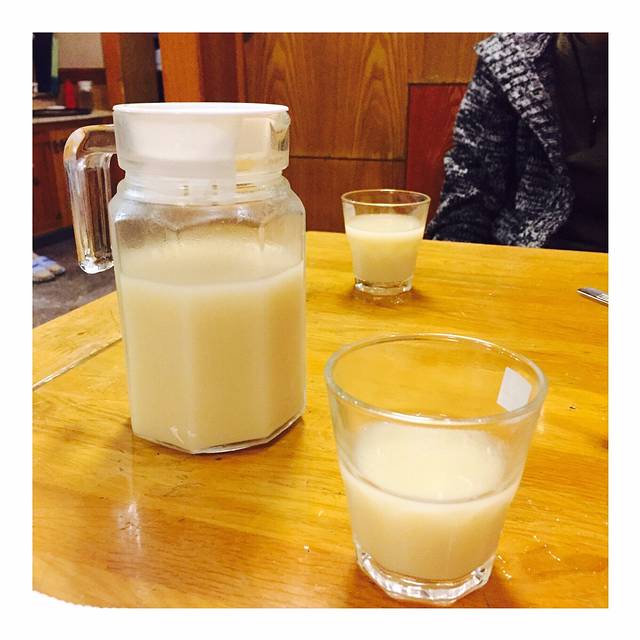 逛完也到五点了,然后我们就往前走,就去全州拌饭吃饭,我们在的时候前面就排了30多桌了,但是等的还挺快的,一会儿等着十分钟就到我们。个人不太爱吃那个拌饭,炸鱿鱼打包带走了,最爱喝那个米酒真的很好喝,全都喝了,推荐还是人多去比较好,可以多吃几样吃的。