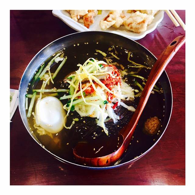 到了延吉,我们就把行李放在酒店,酒店就在延吉大学的附近,非常的方便,放好东西我们我们就来到延吉大学对面的服务大楼吃冷面和锅包肉,量很大,两个女孩儿的冷面都没有吃完,锅包肉都吃了,服务大楼是很有特色的,感觉双语招牌还是很壮观的,然后这个菜单儿,大家可以看一下。