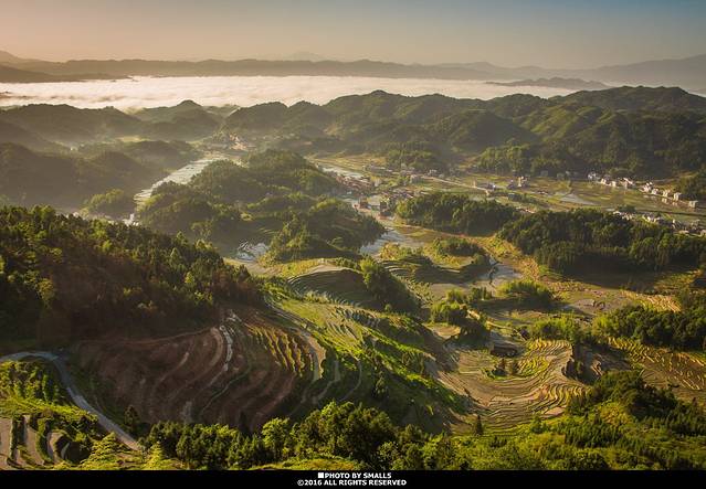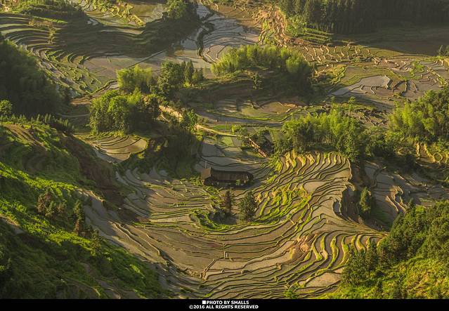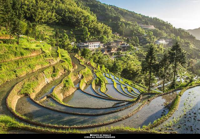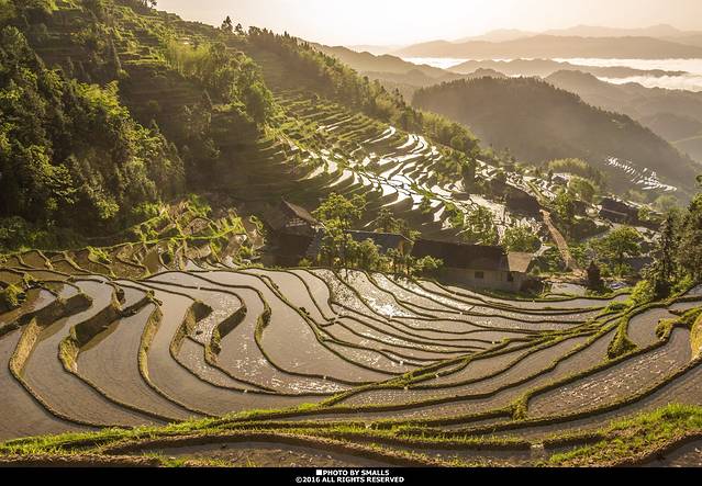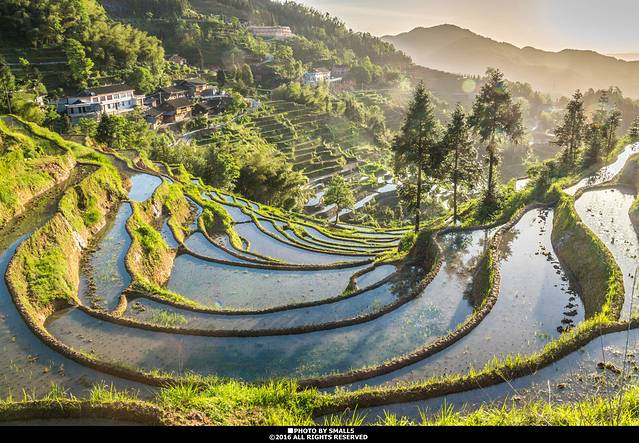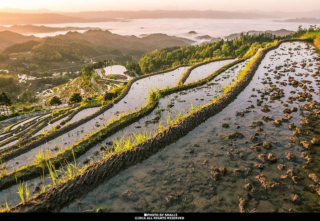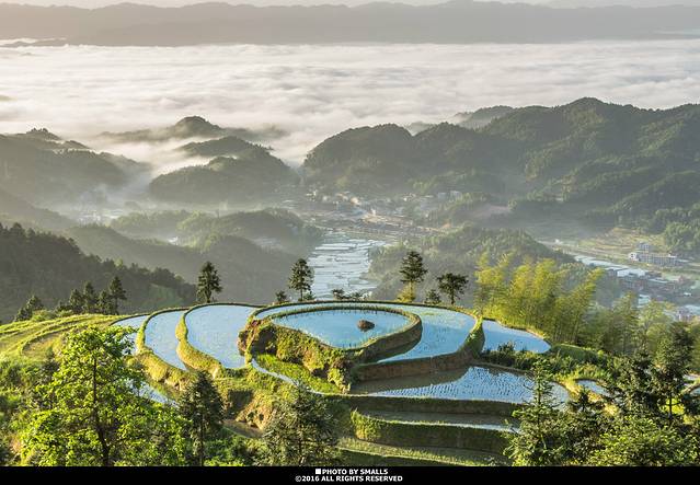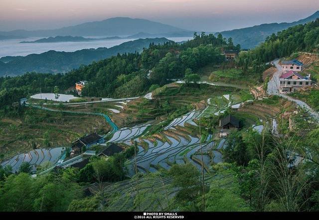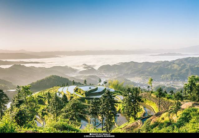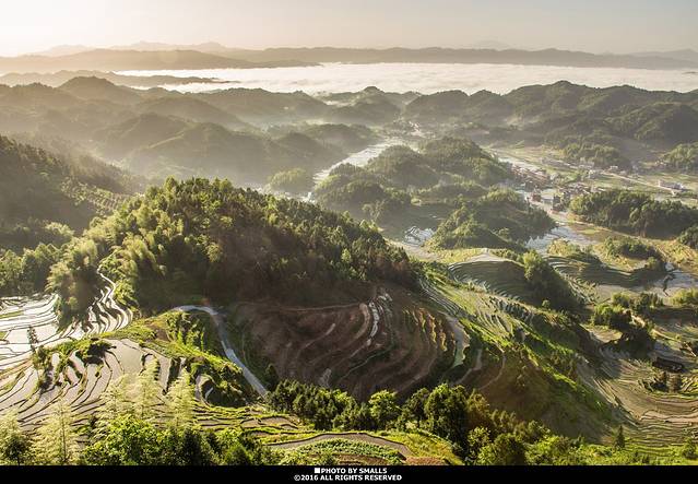 漫山遍野,层层叠叠,曲折有致,仿佛是山水画家笔下灵魂飘逸的弧线,好似充满神秘和灵气的大地雕塑,象一张信手抖开的八卦图,充分体现了梯田小巧、精致、灵魂、飘逸、秀美。(官方介绍)