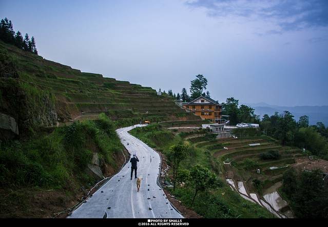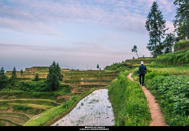 如果不是老司机带路,我们俩走到客栈估计都天黑了,哪里还有等日落的机会,压根也不会知道还有这样的小路可以通往核心景区:“心”形梯田。