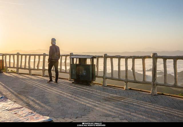 四点半,光线稍微亮了一点了,我实在忍不住了,下楼去看了一眼,大喜,哈哈有云海,立马跑上去叫人,结果小兵大哥一看,打趣道:“这太普通啦,不太理想。”我当然对这种话毫不在乎,我太容易满足了,真的。