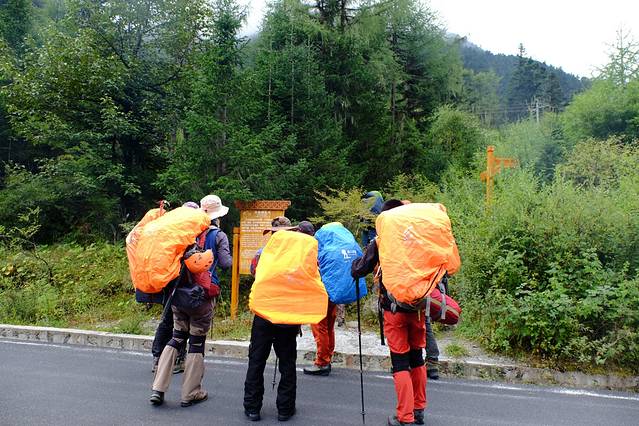 我们的背包太多,把景区大把最后1排都放满了,十几分钟之后人坐满了,开始奔赴上海子接待站,离上海子接待站还有1KM的地方就是半脊峰起点,需提前告知车师傅在这里下车。