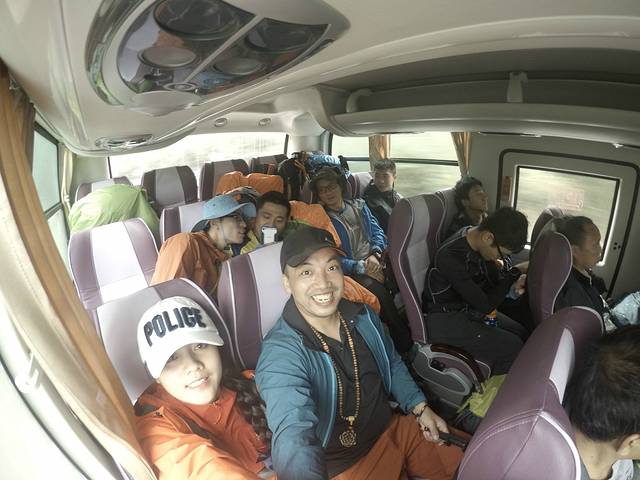 折腾完技术装备已经1点多了,睡了4个多小时起床开始奔赴进去购买门票,挨个的签字画押“生死状”,说白了就是景区规避责任的一份声明,8点到达购票中心竟然没有开门。。。来早了,于是乎组织大家先来一场“小学生广播体操第八套”热热身,前面那娃儿明显把动作搞错了撒。