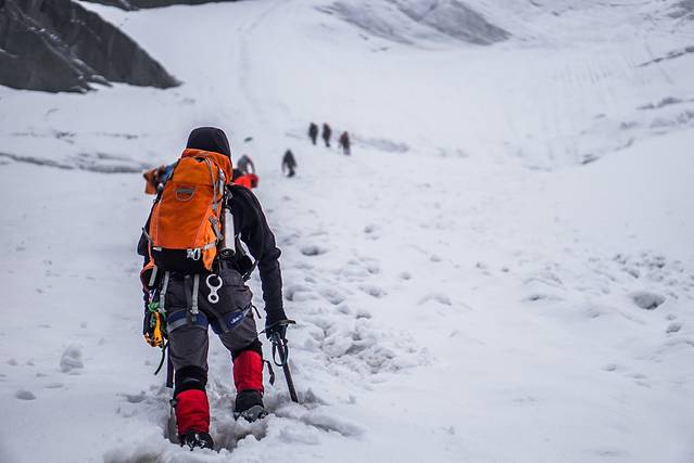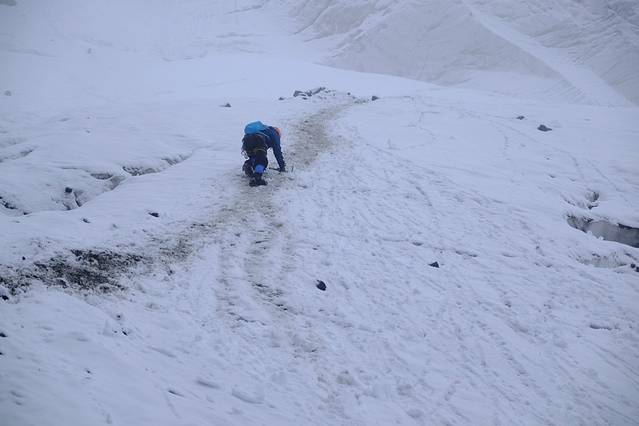 3、本人肉测:5-6月雪量较大,冲顶比较耗费体力,但危险系数及难度降低,9月冰雪融化只剩下亮冰,从R2冲顶的难度剧增,需要使用攀冰或上升器。