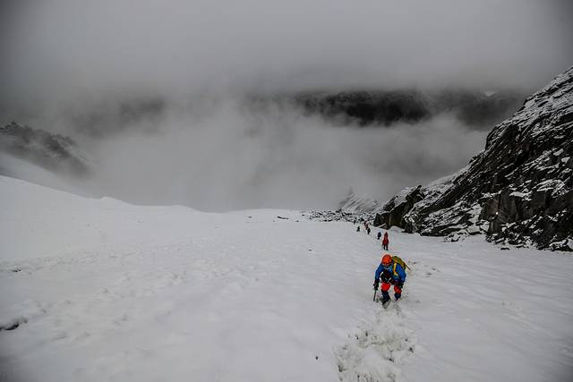 一直对技术型雪山没有太大的兴趣,一是因为太危险,二是因为自身体力不足,三是因为花费太高,也不知道为何突然脑子一发热就组织了这么一场半自助的半脊峰,为了满足朋友的愿望,还是自己的?我没有答案,天气以及绳索原因当我宣布全员下撤那一瞬间周边队友的叹息声依旧回响在耳边,我不愿看见15双失落的眼神,但已经发生了,无力挽回,失败就是失败了,不想过多描述。