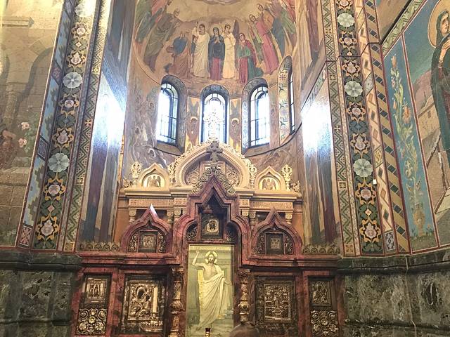 第六天:圣彼得堡,在圣彼得堡的第一天我选择了在市区内逛一逛,第一站选择了滴血大教堂10点售票,里面可以租借中文讲解器,在这里,碰到了小偷,抢劫,虽然对象不是我,但还是心有余悸。圣彼得堡大部分景点都在市区,可以选择步行,如果你住在市区的话
