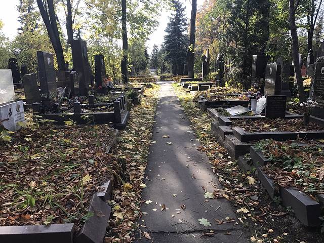 在马路对面坐M3公交车四站路,到达莫斯科大桥,桥的对面就是新圣女公墓,圣女修道院。埋葬了,加加林,赫鲁晓夫,王明等名人都是半身人像,但是太多了,找不到。
