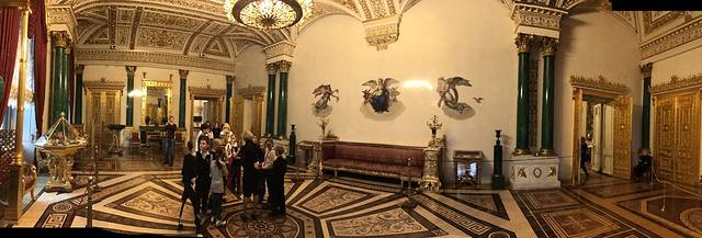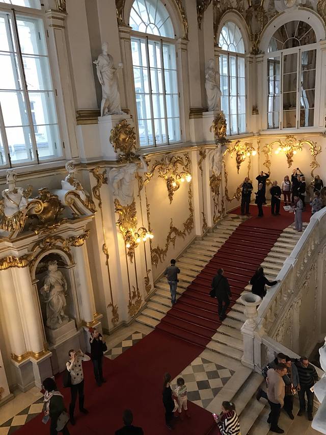 第七天,冬宫一日游,冬宫,世界四大博物馆之一,非常大,非常华丽,建议一整天都在里面。冬宫早晨10点开始售票,即使淡季也建议早一点去排队,因为里面只有三个售票窗口,很慢的,也可以网上订票,但是会贵很多。里面也有中文讲解器可以租借,需要寄存外套。