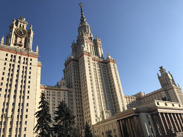 莫斯科大学位于莫斯科的西郊,和麻雀山很近,大学里是不允许进入的,必须要求有证件。但是可以去参加外围一些建筑区域。